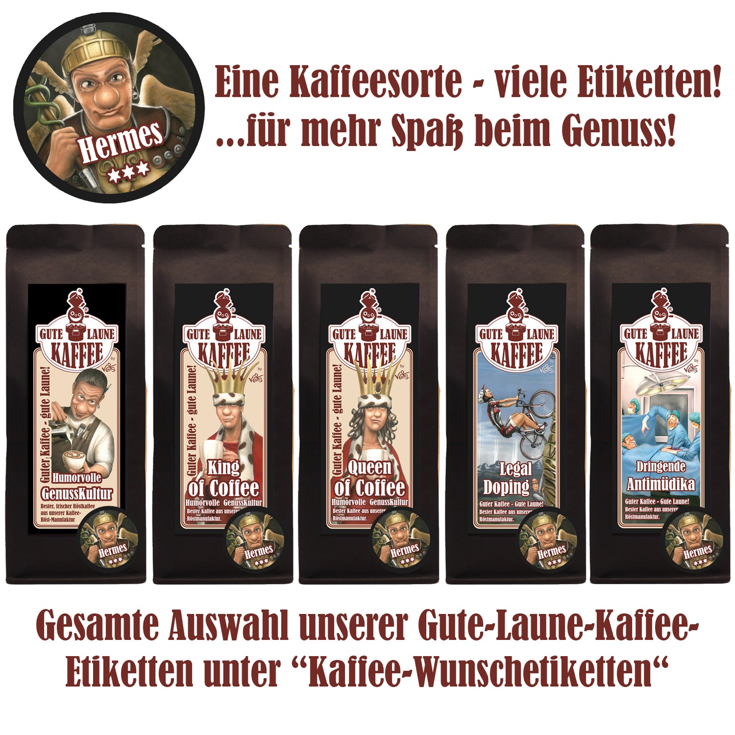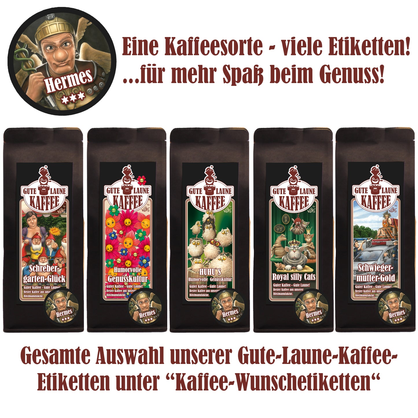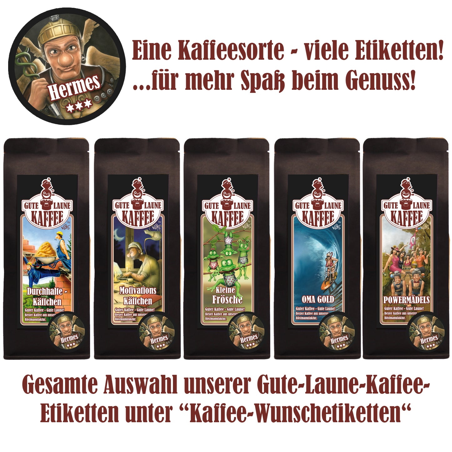 Eine Kaffeesorte - viele Etiketten! ...für mehr Spaß beim Genuss und Verschenken!