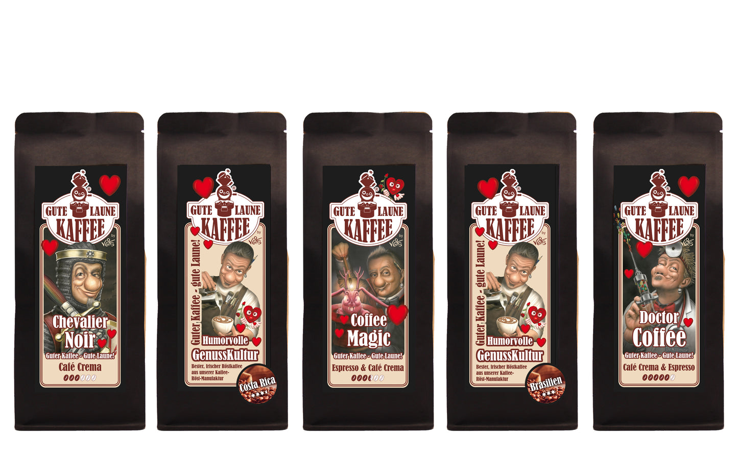 Fünf Kaffeesorten - viele Etiketten! ...für mehr Spaß beim Genuss und Verschenken!