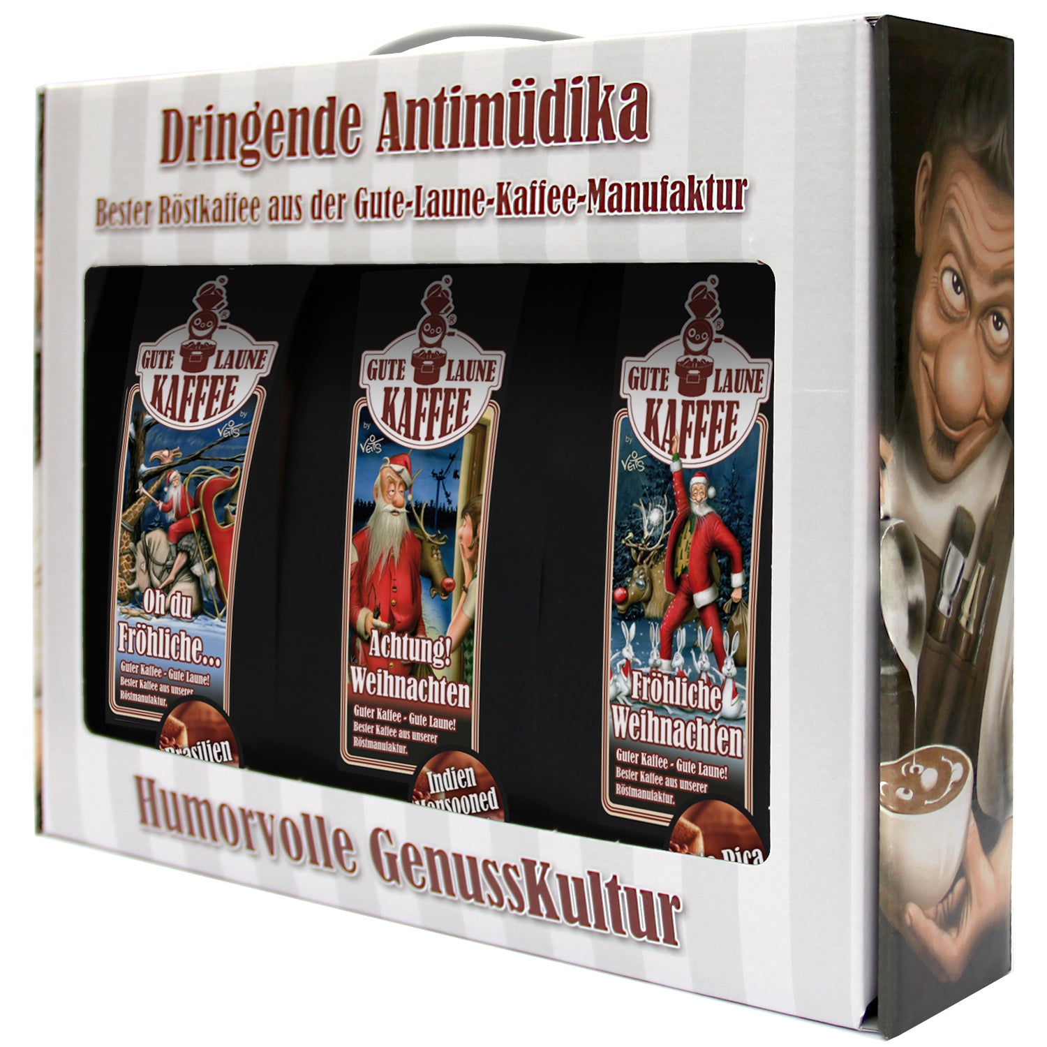 Gute Laune Kaffee-Handtasche 3x250g Café Crema Weihnachtsedition Achtung Weihnachten
